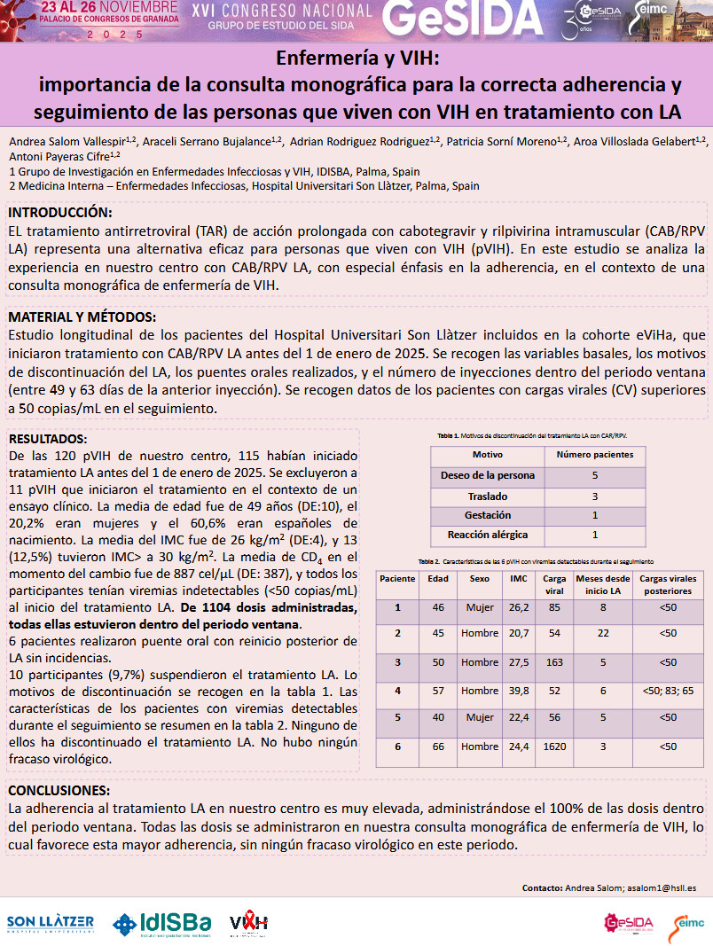 Enfermería y VIH: importancia de la consulta monográfica para la correcta adherencia y seguimiento de las personas que viven con VIH en tratamiento con LA
