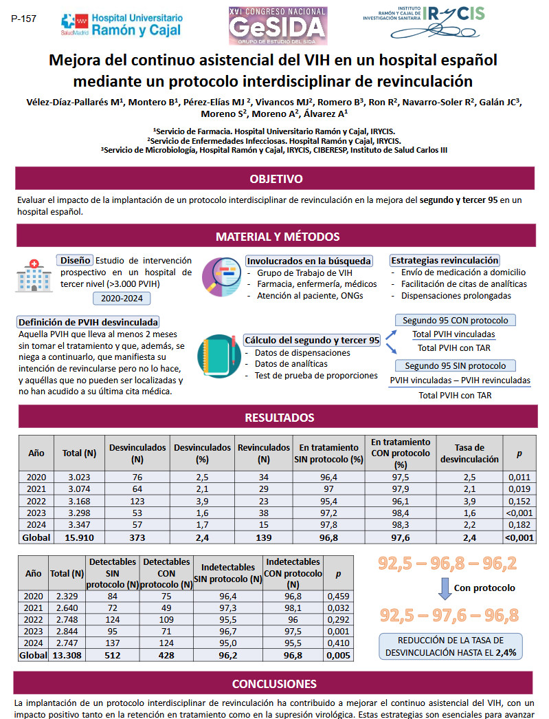 El objetivo es identificar los factores de riesgo que afectan a las personas con VIH (PVIH) para perder su vinculación con el hospital. Se realizó un estudio retrospectivo de casos y controles (1:4) en un hospital de tercer nivel. Los casos se definieron como PVIH que habían perdido la vinculación con el sistema sanitario, considerando como tal el hecho de llevar 60 o más días sin tomar su tratamiento antirretroviral según los registros en el Servicio de Farmacia y no acudir a sus últimas citas con los especialistas (ambas de forma simultánea). Se emparejaron los controles por edad y por fecha de recogida de tratamiento antirretroviral en el Servicio de Farmacia. Se incluyeron 305 pacientes (61 casos y 244 controles). La pérdida de vinculación fue del 2% (61 PVIH de 3.101 atendidas en el hospital). Ser hombre cis [OR: 4,47 (1,02; 19,65); p=0,047], mujer transgénero [OR: 23,87 (2,91; 195,82); p=0,003], latinoamericano [OR: 2,69 (1,29; 5,58); p=0,008], tener registros de mala adherencia [OR: 0,04 (0,01; 0,11); p=0,000], abuso de alcohol [OR: 3,24 (1,30; 8,04); p=0,011] y uso de drogas recreativas [OR: 2,01 (1,03; 3,93); p=0,039] fueron identificados como factores de riesgo para desvincularse. Los factores de riesgo identificados permiten diseñar estrategias precisas para disminuir las pérdidas de vinculación como pueden ser aquellas encaminadas a disminuir el consumo de alcohol y la deshabituación de drogas de uso recreativo o potenciar acciones que puedan mejorar o facilitar la adherencia al