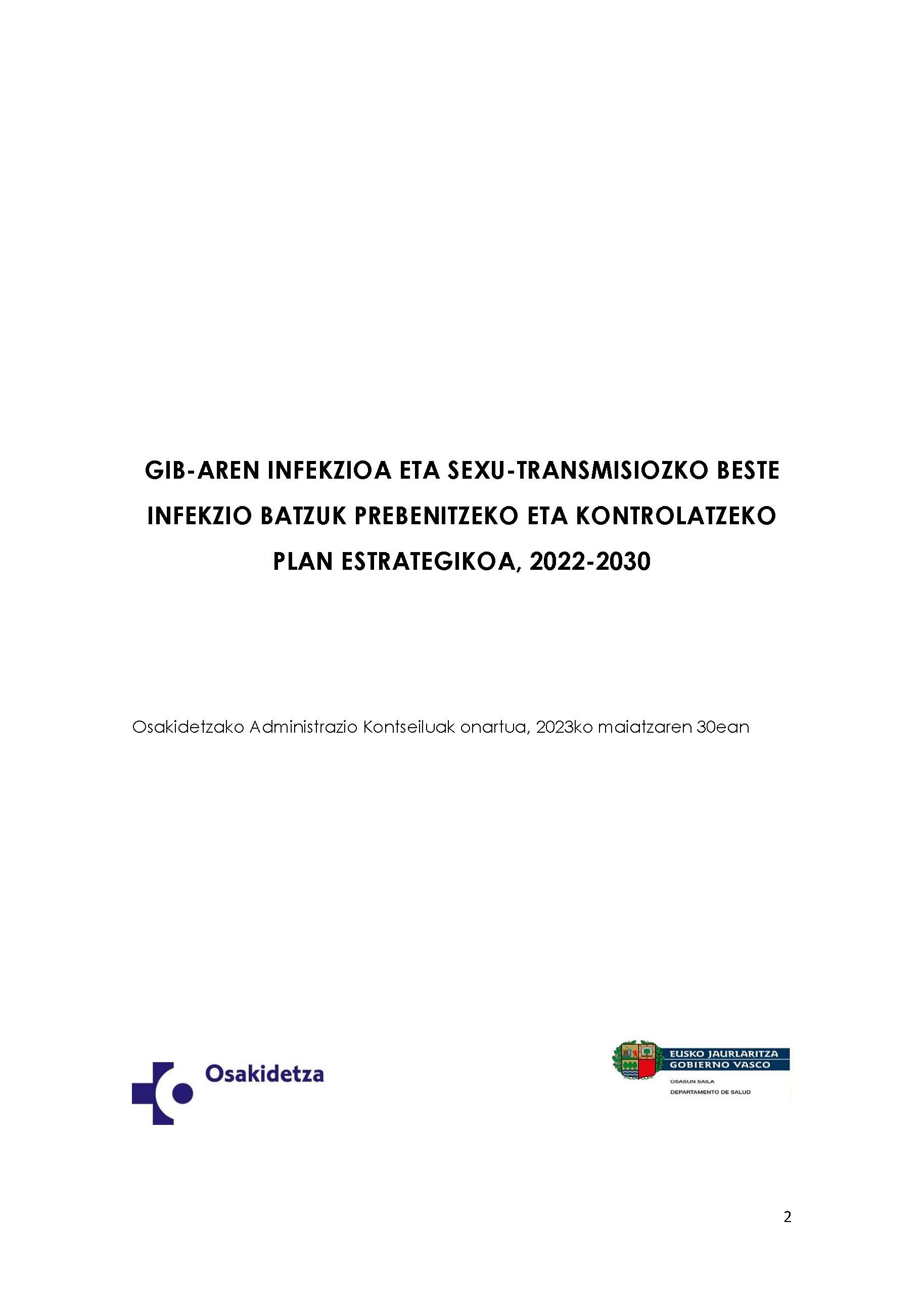 GIB-aren infekzioa eta sexu-transmisiozko beste infekzio batzuk prebenitzeko eta kontrolatzeko plan estrategikoa, 2022-2030