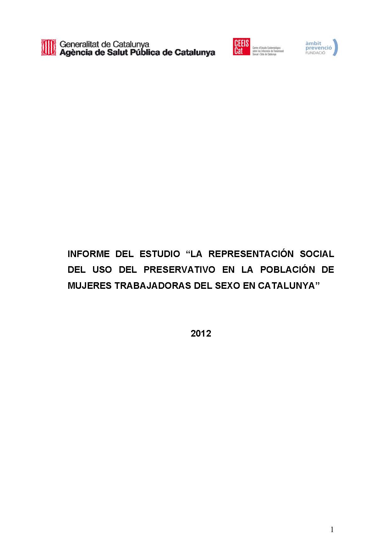 Informe del estudio “La representación social del uso del preservativo en la población de mujeres trabajadoras del sexo en Catalunya”