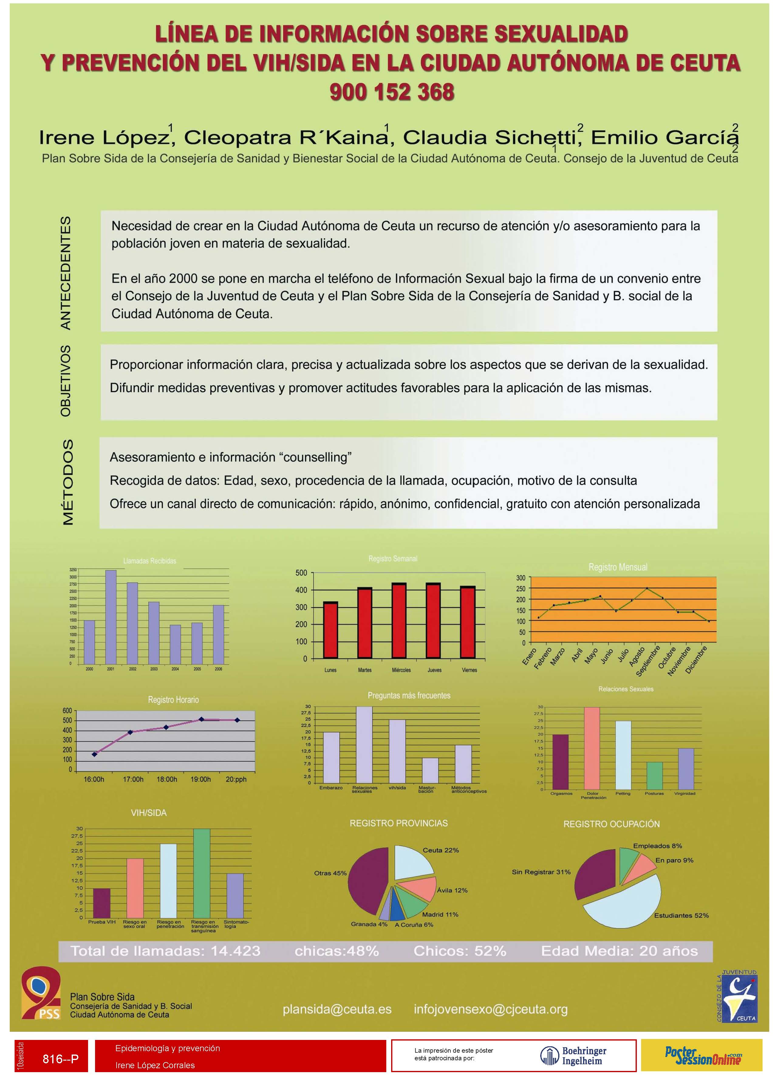 Línea de información sobre sexualidad y prevención del VIH/sida en la ciudad autónoma de Ceuta : 900 152 368