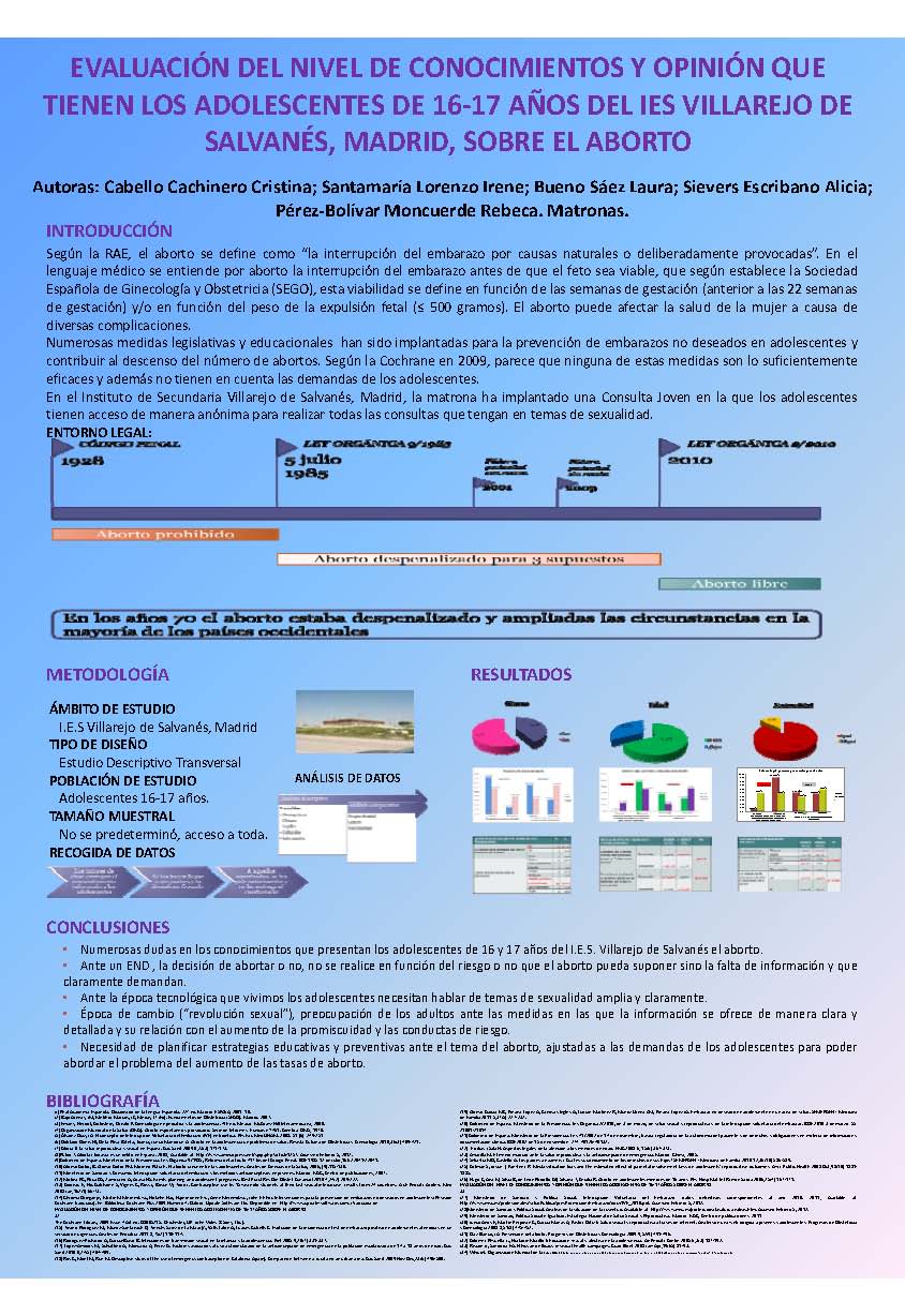 Evaluación del nivel de conocimientos y opinión que tienen los adolescentes de 16-17 años del IES Villarejo de Salvanés, Madrid sobre el aborto