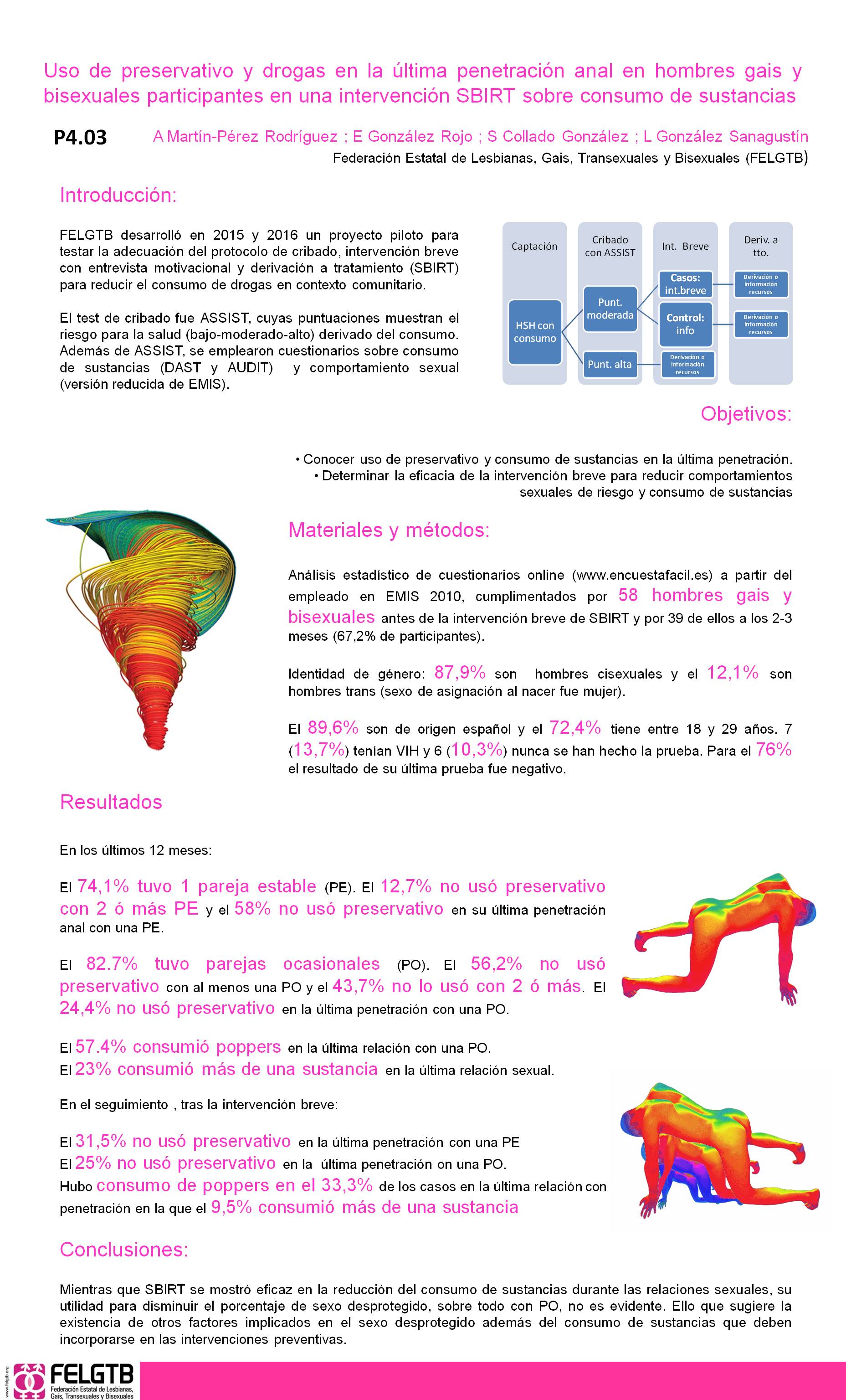 Uso de preservativo y drogas en la última penetración anal en hombres gais y bisexuales participantes en una intervención SBIRT sobre consumo de sustancias