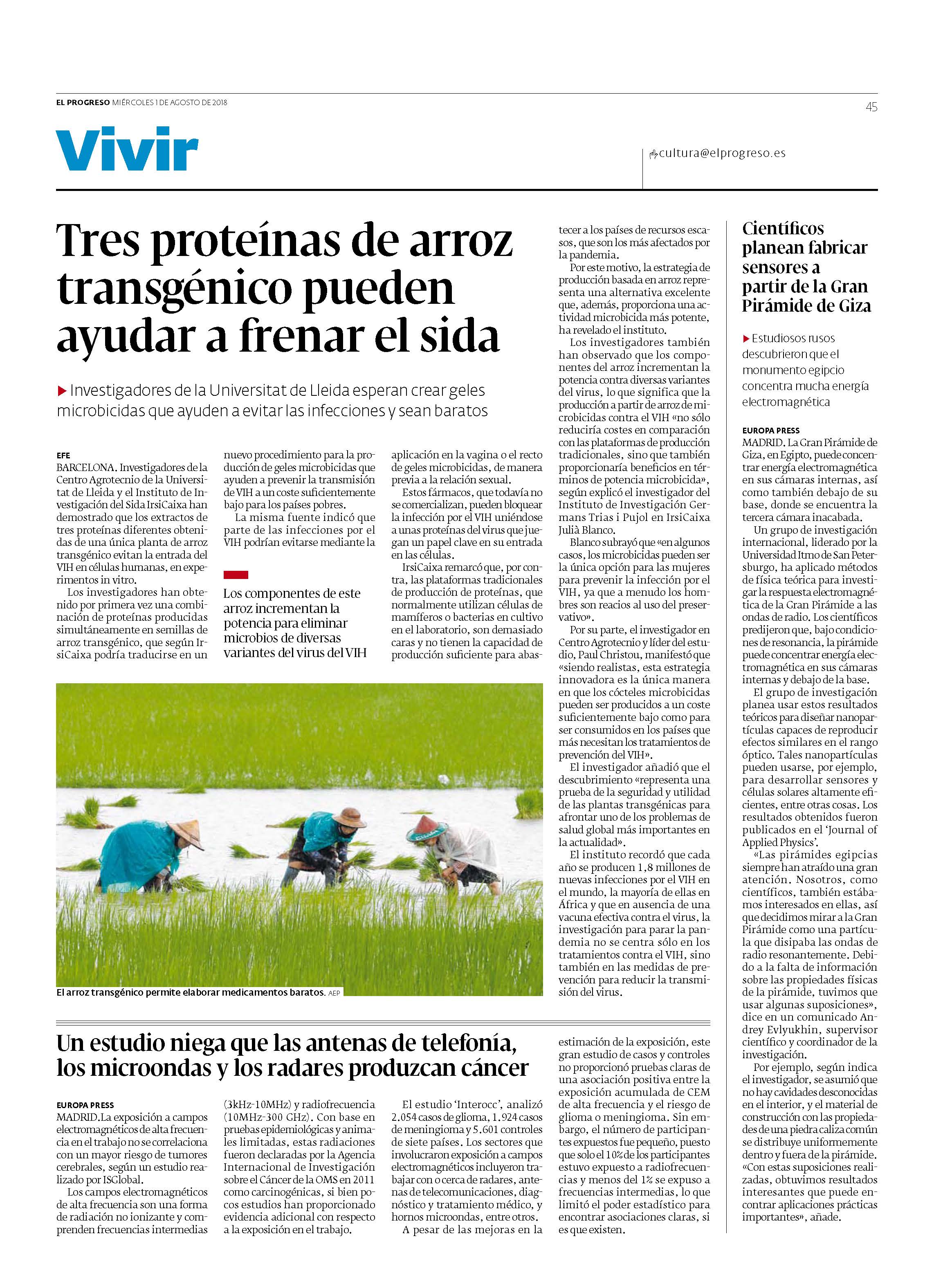 Investigadores de la Universitat de Lleida esperan crear geles microbicidas que ayuden a evitar las infecciones y sean baratos.- Tema: