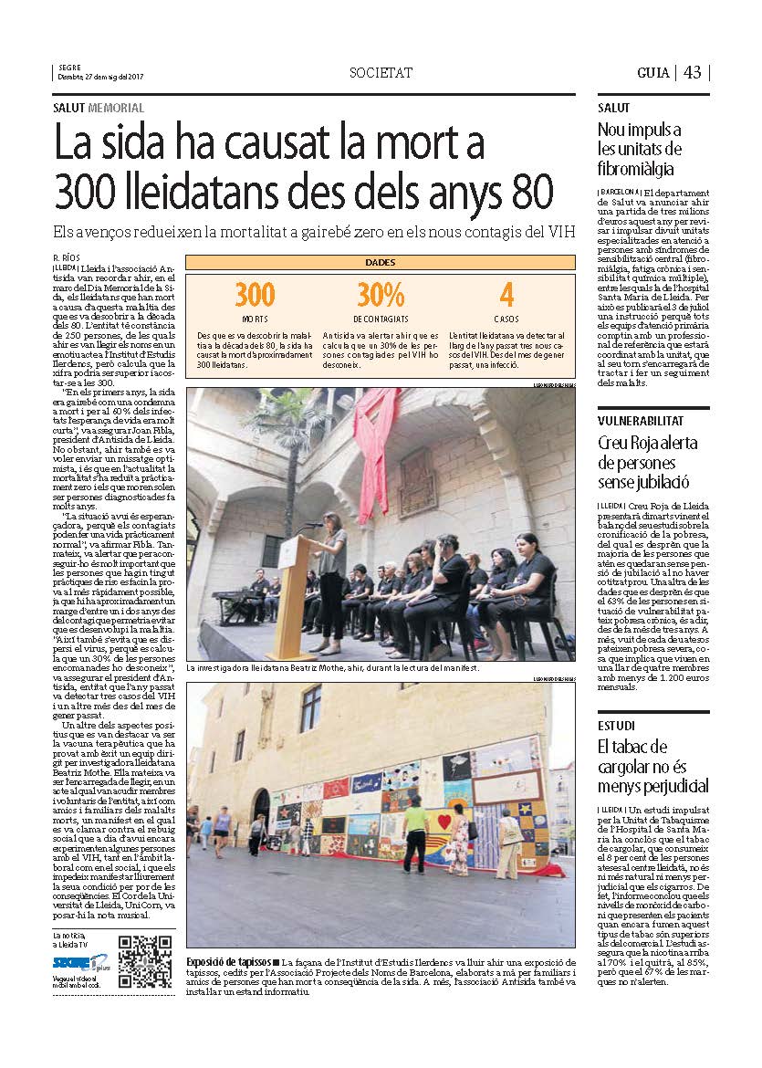 La sida ha causat la mort a 300 lleidatans des dels anys 80