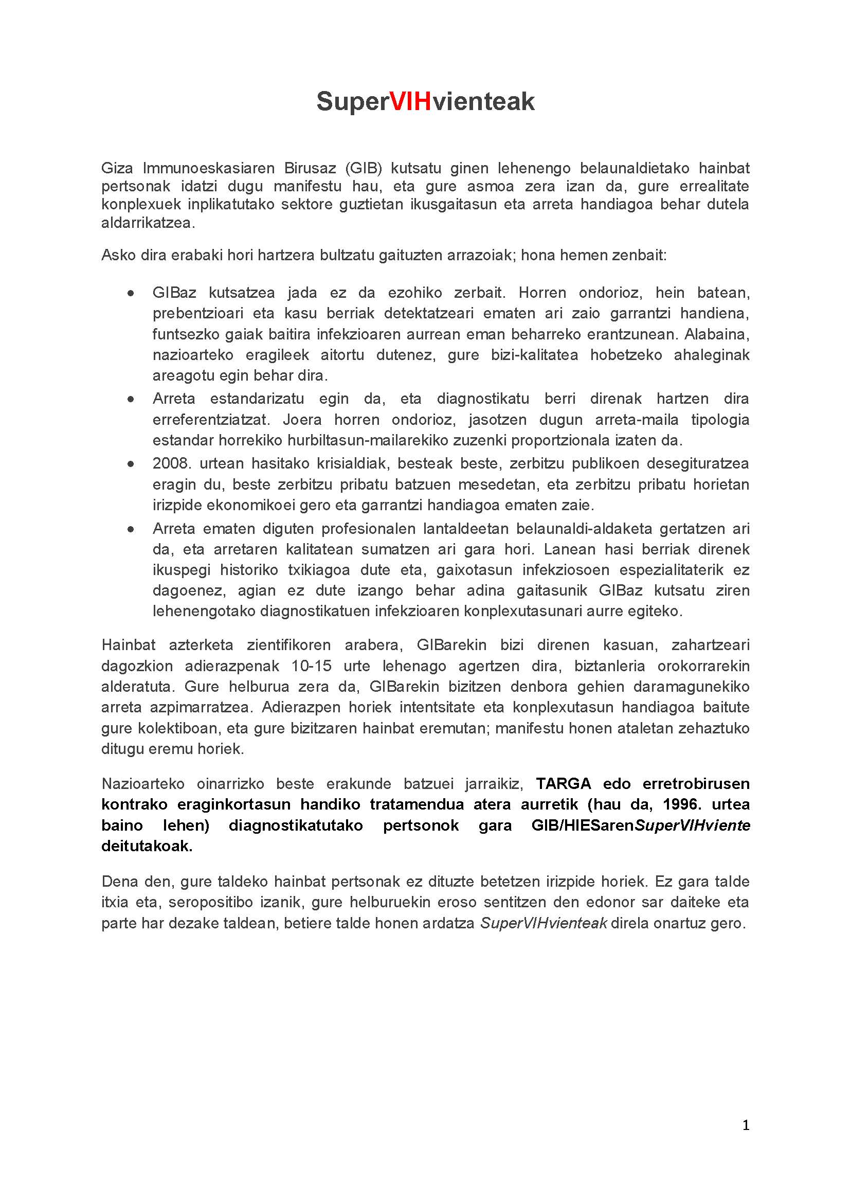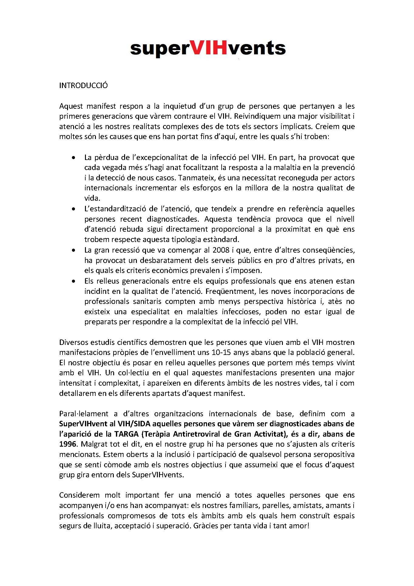 Este manifiesto responde a la inquietud de un grupo de personas pertenecientes a las primeras generaciones que contrajimos el VIH y tiene como fin reivindicar una mayor visibilidad y atención a nuestras complejas realidades desde todos los sectores implicados.Ficha bibliográfica