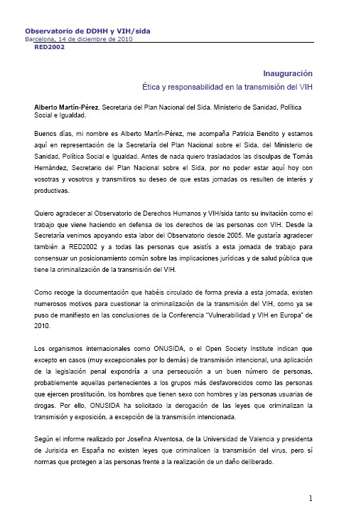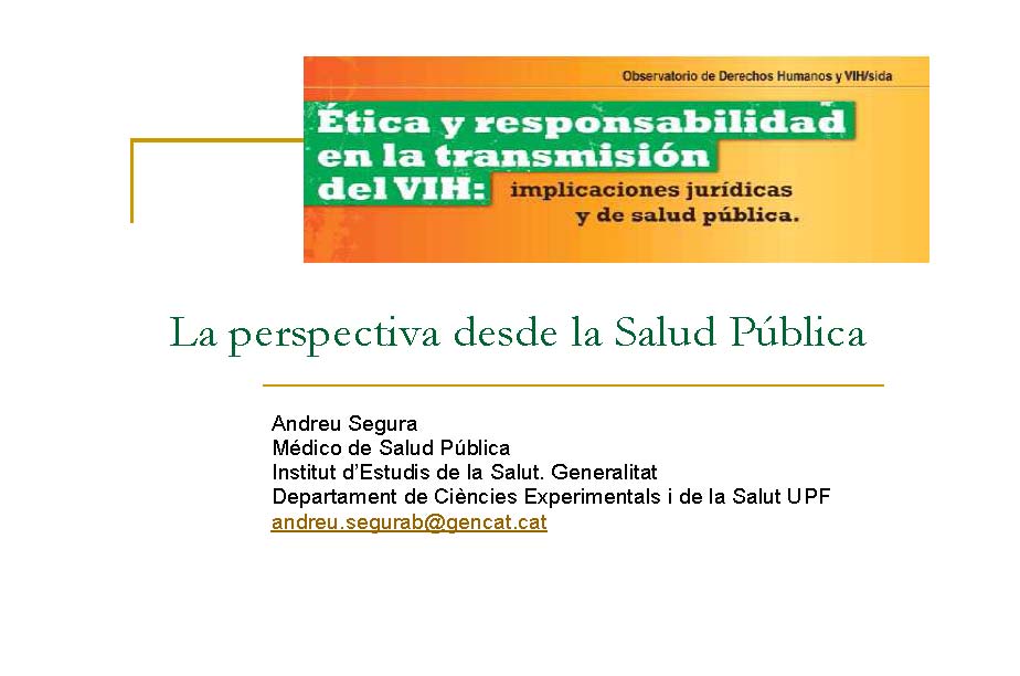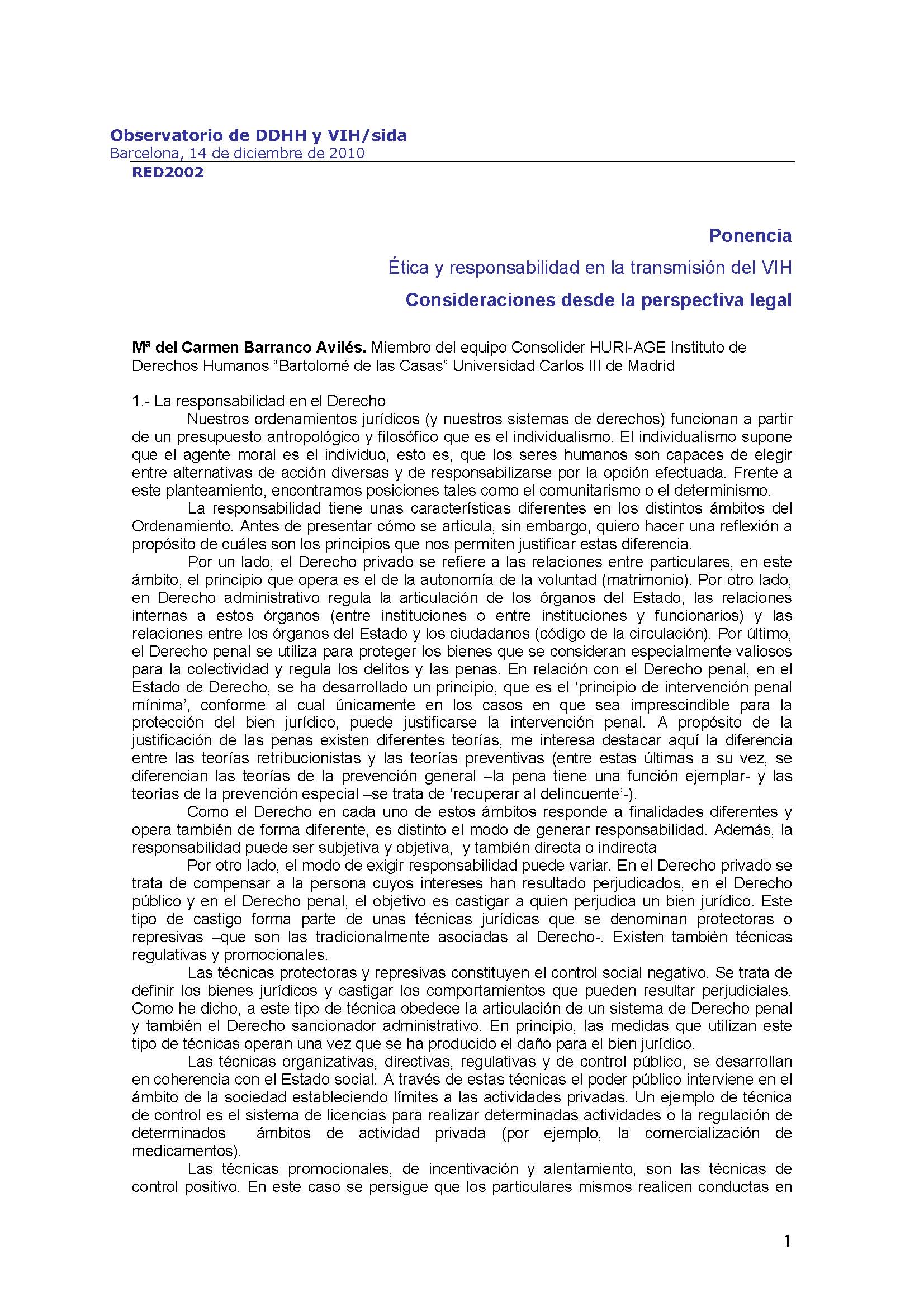 - Ponencia presentada en la jornada "Ética y responsabilidad en la prevención del VIH: implicaciones jurídicas y de salud pública" celebrada el 14 de diciembre de 2010 en Barcelona.