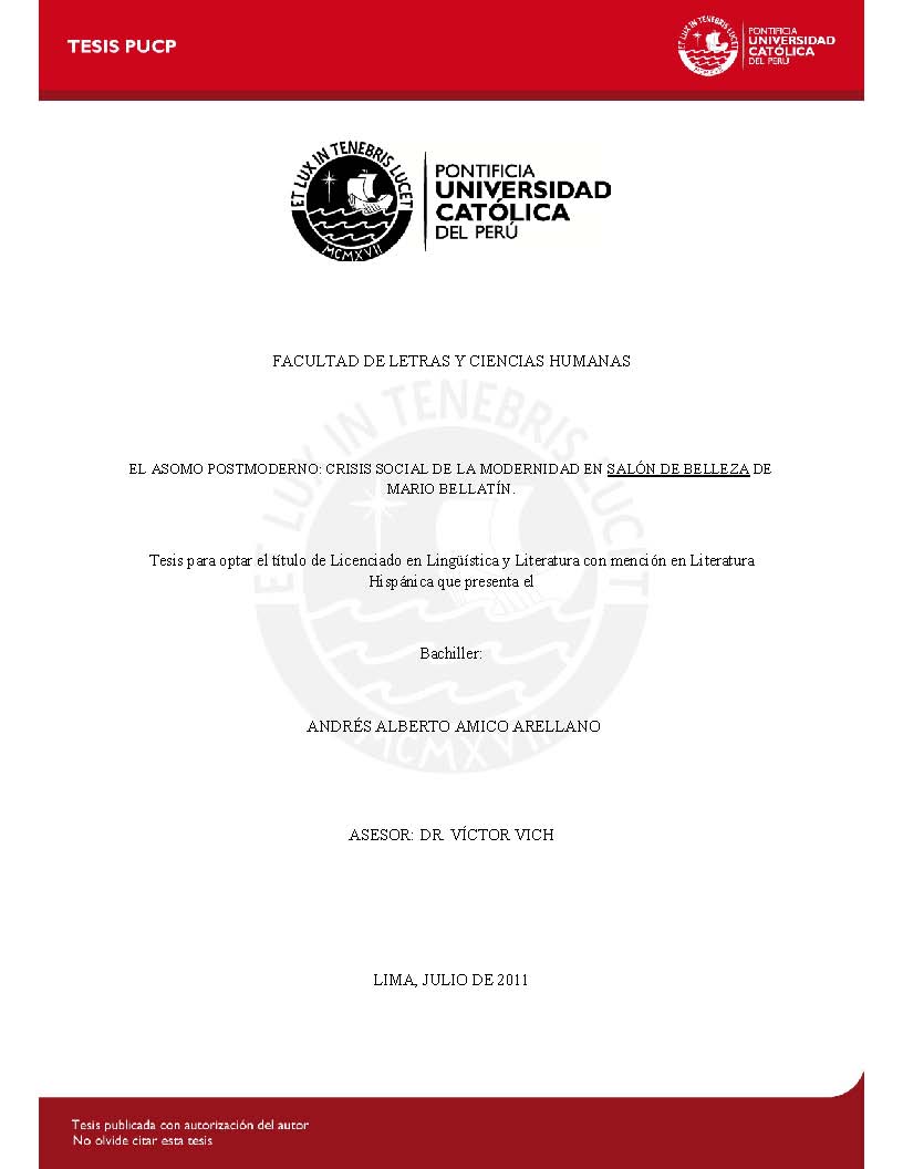 - Tesis para optar el título de Licenciado en Lingüística y Literatura con mención en Literatura Hispánica.