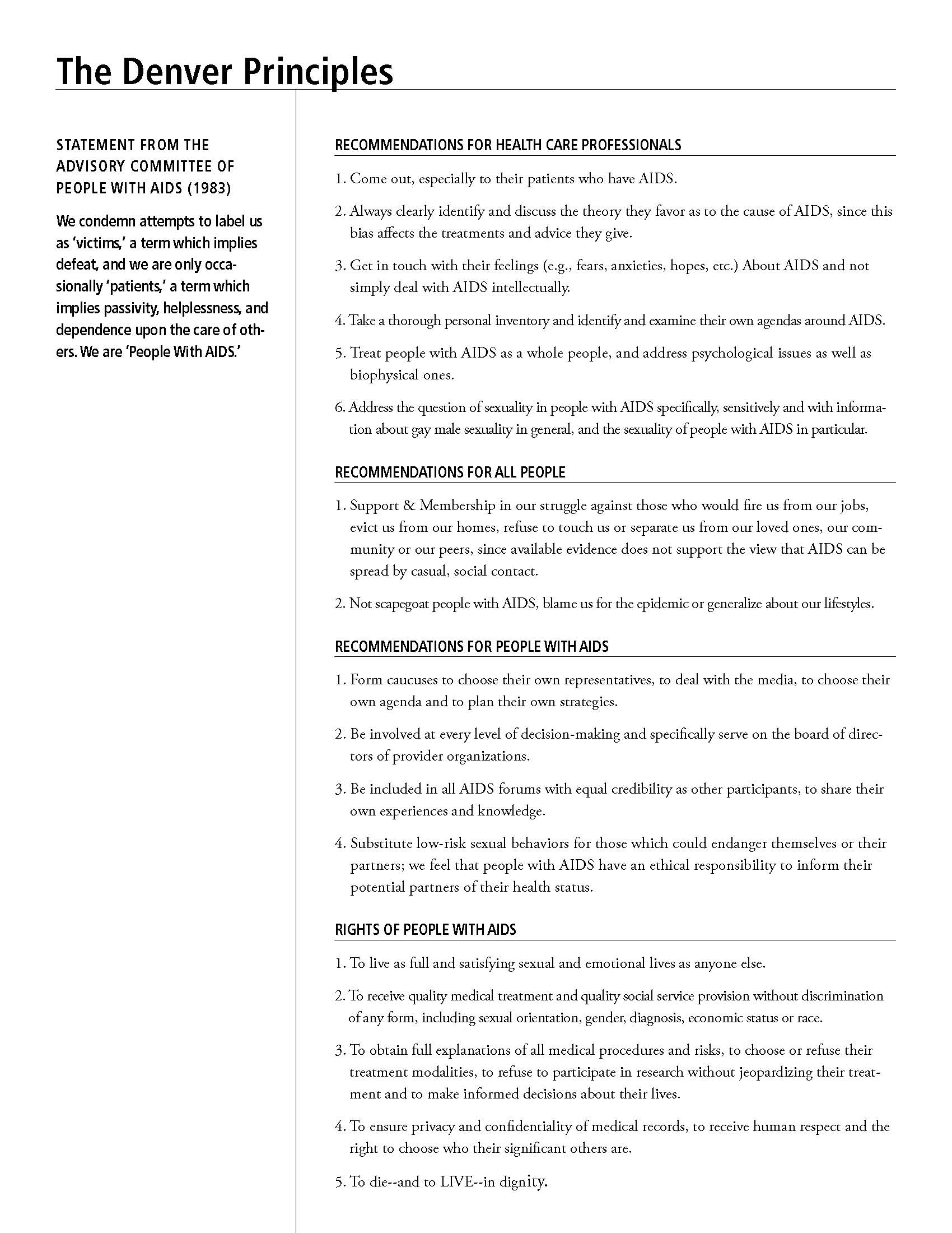 Por primera vez, un grupo de activistas elabora en al ciudad estadounidense de Denver los principios que recogen los derechos básicos de las personas afectadas por el VIH/sida.- Tema: