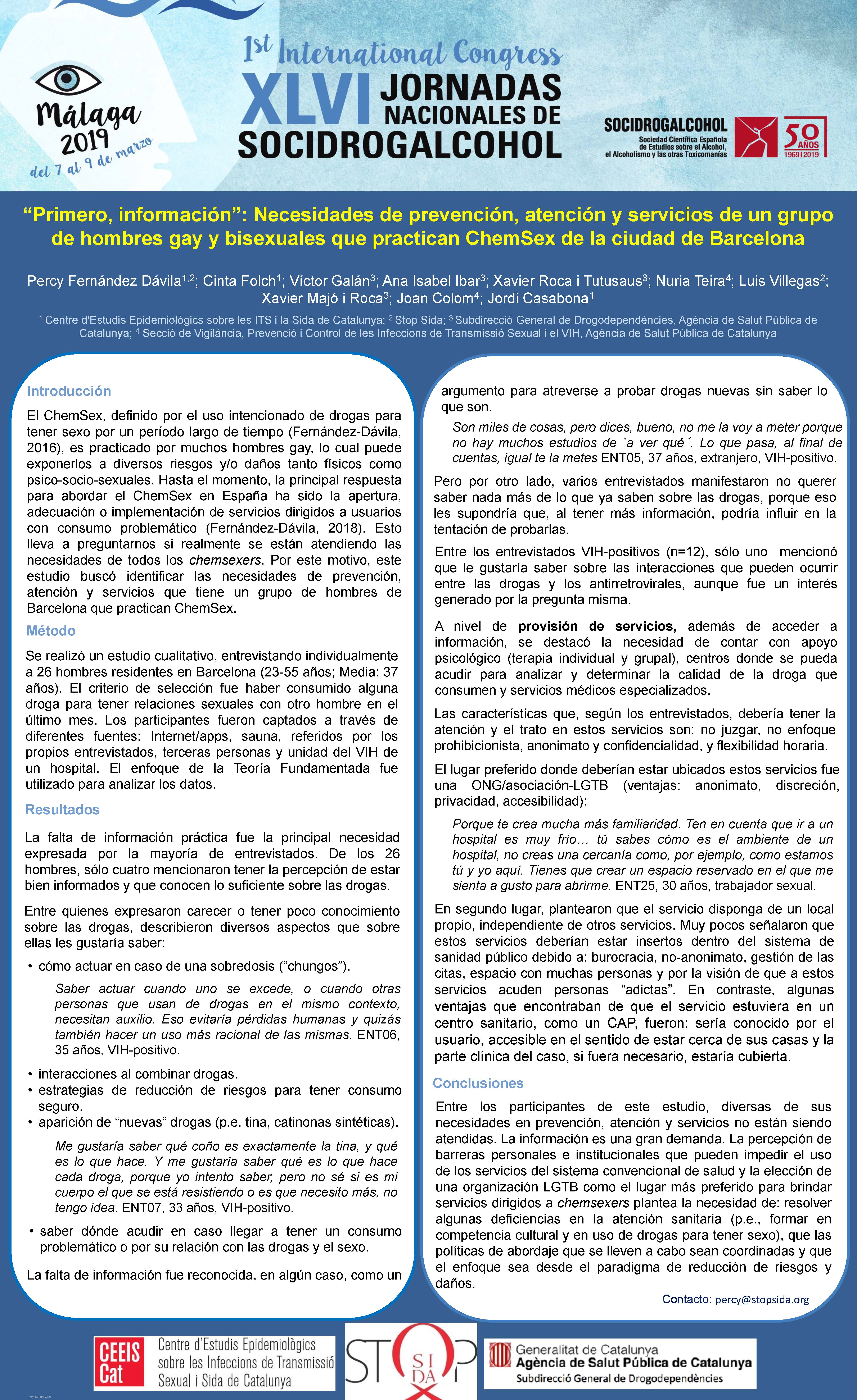 “Primero, información”: Necesidades de prevención, atención y servicios de un grupo de hombres gay y bisexuales que practican ChemSexde la ciudad de Barcelona