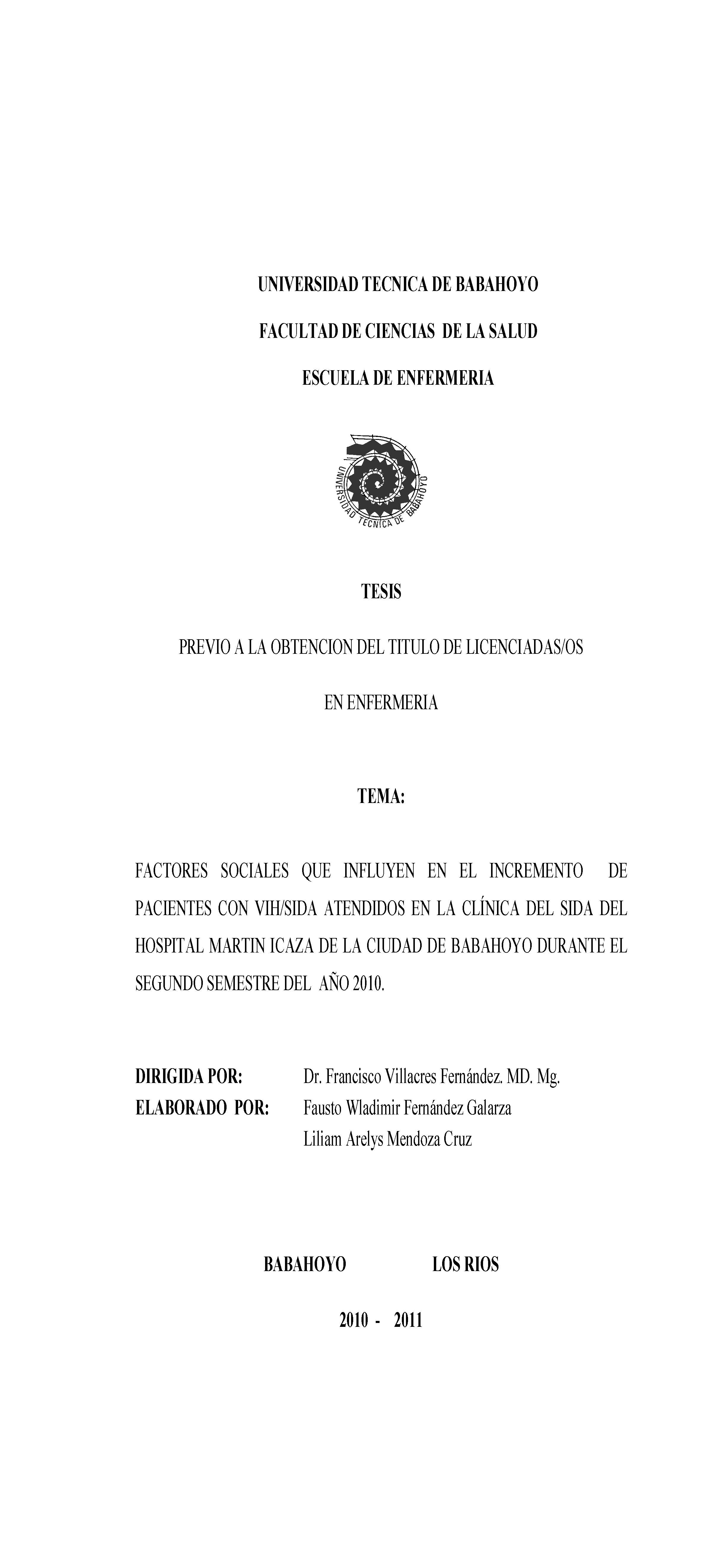 Factores sociales que influyen en el incremento de pacientes con VIH/sida atendidos en la clínica del sida del Hospital Martin Icaza de la ciudad de Babahoyo durante el segundo semestre del año 2010
