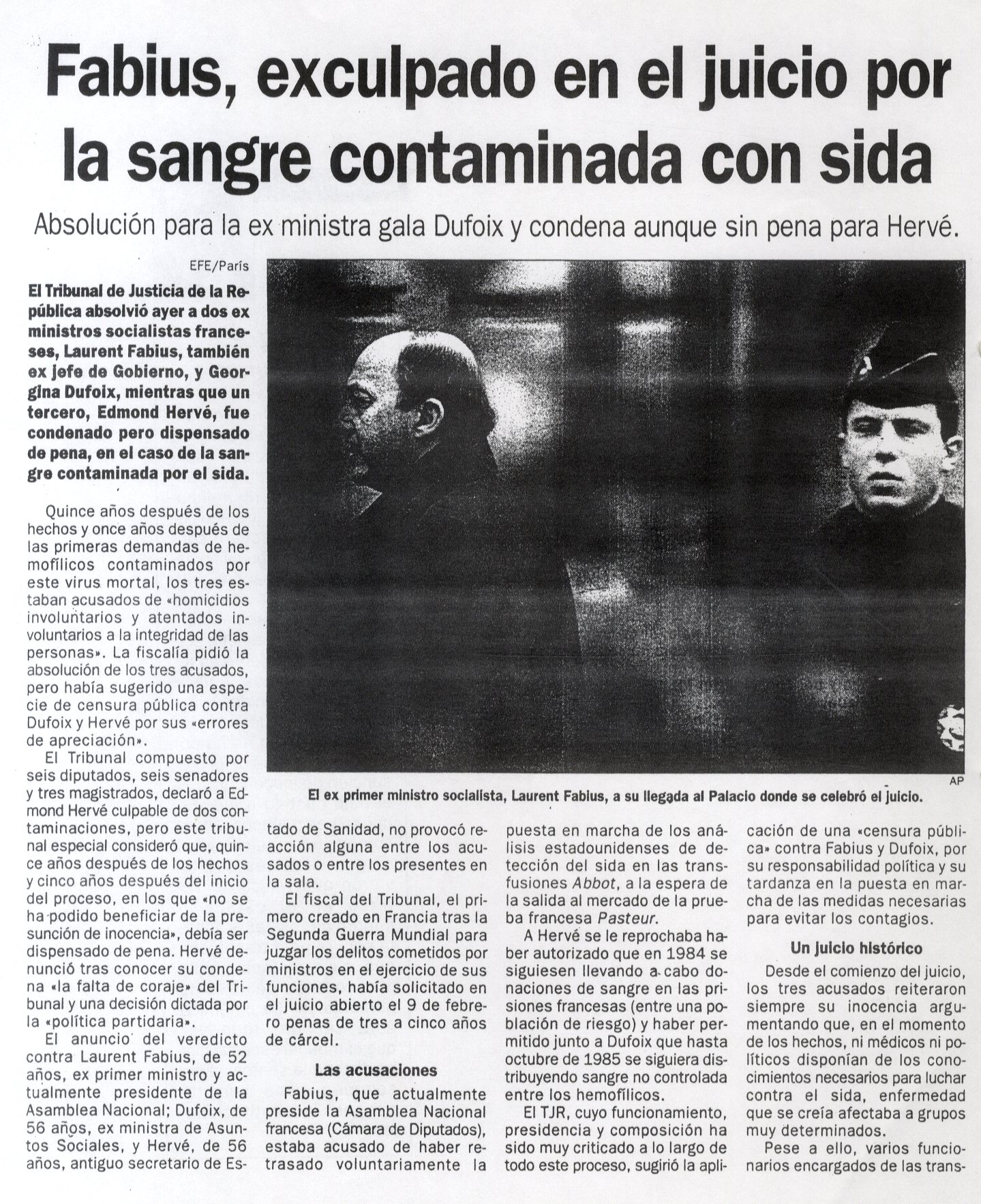 Fabius, exculpado en el juicio por la sangre contaminada con sida